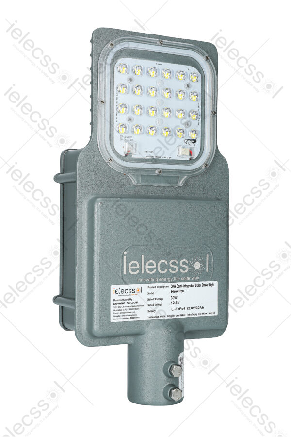 ielecssol Semi-Integrated Solar Street light is a solar-powered compact LED lighting solution integrating high power LED & Battery in one aluminium Die cast fixture. Solar Panel is mounted on the top of the pole. It is very easy to install & at any location where there is no power supply available and Low on maintenance.
