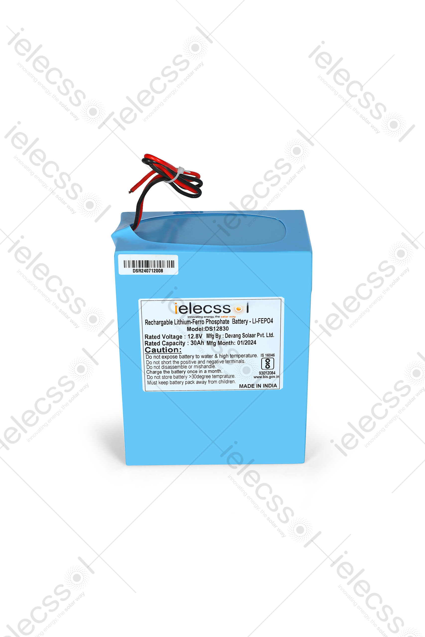 - Battery – 12.8V, 24Ah Lithium Ferro phosphate Battery